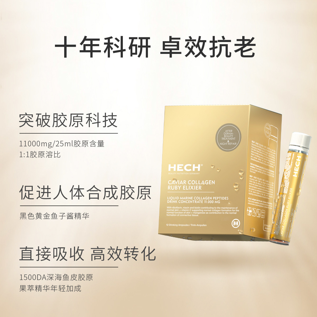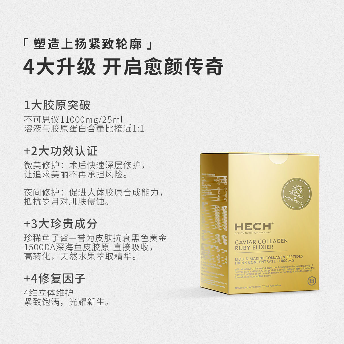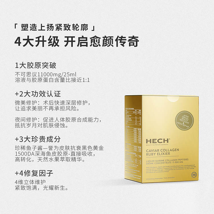 赫熙爱丽珂鱼子酱精华胶原蛋白肽口服液12瓶