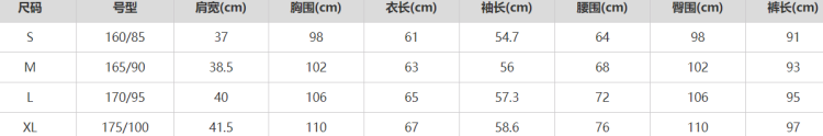 尺码 S M L XL