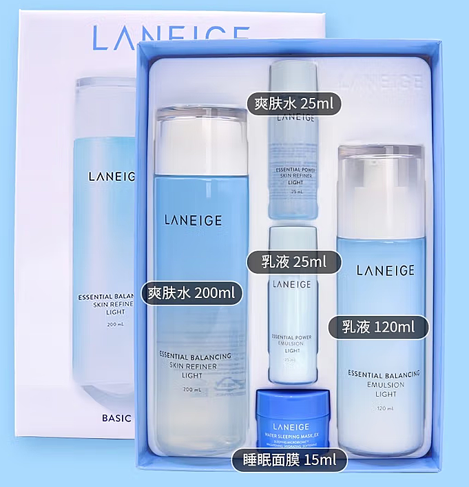 兰芝水库凝肌保湿两件套Light/清爽型(水200ml+25ml乳120ml+25ml睡眠面膜15ml)