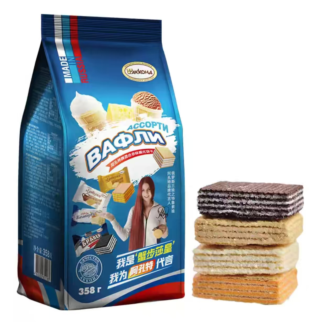 俄罗斯进口零食品冰淇淋威化阿孔特奶酪味饼干358g