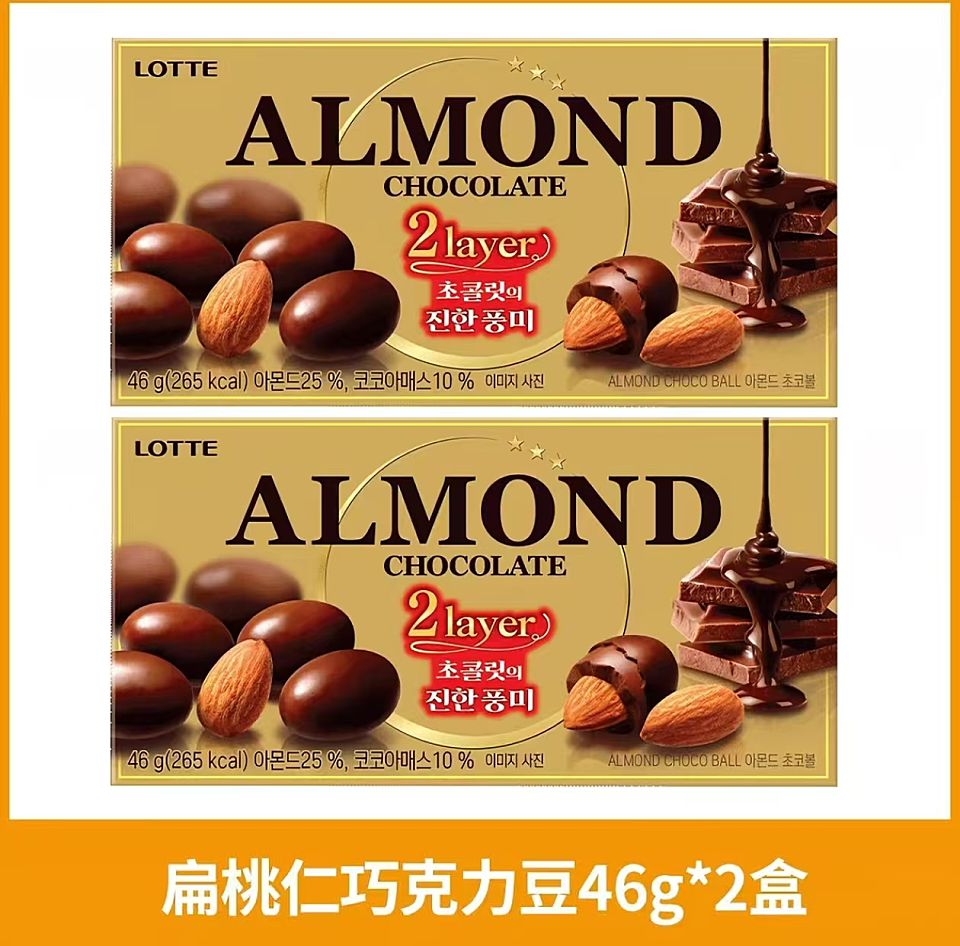 韩国进口LOTTE乐天扁桃仁巧克力豆46g*2