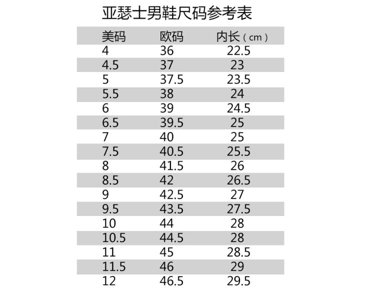 尺码 4 4.5 6 8.5 9.5