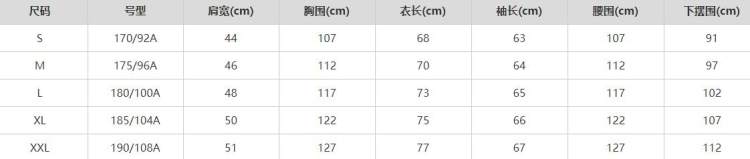 尺码 S M L XL XXL